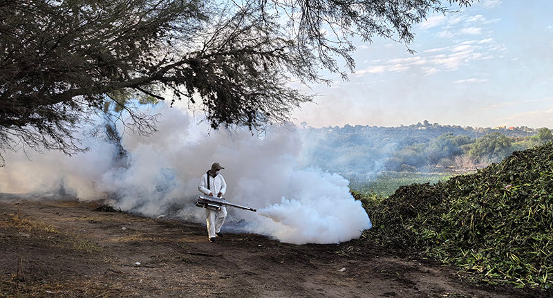 Con la aplicación de insecticida mediante termonebulización, se trabaja para eliminar la presencia de mosquitos.